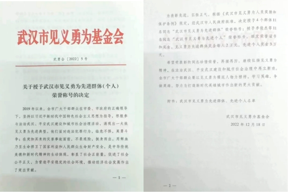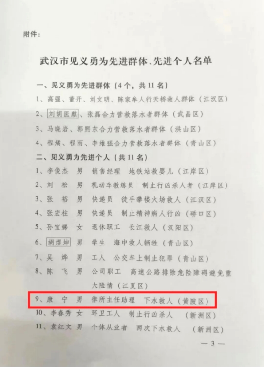 av網站政法学院 优秀校友康宁被授予“武汉市见义勇为先进个人”