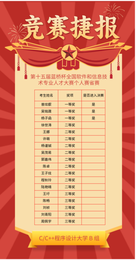 学校高度重视本次大赛,安排教师团队全程参与指导。本学期开学以来,信息与计算机学院定期开展课外科技活动,利用周末、假期等时间组织开展多场模拟训练,拓展同学们的知识面,有效提高了学生解决问题的水平与能力。另外,省赛一等奖获得者入围总决赛,将与全国优秀学子一决高下。