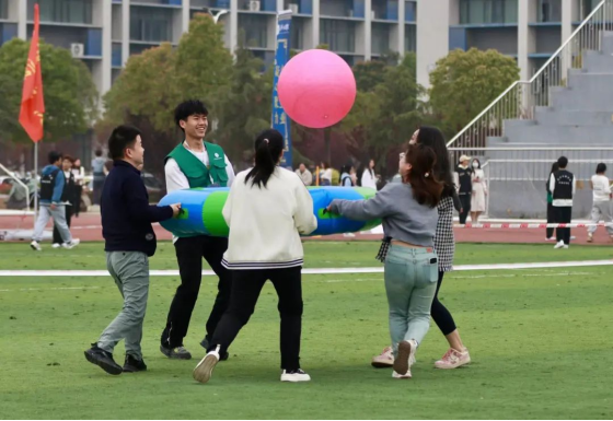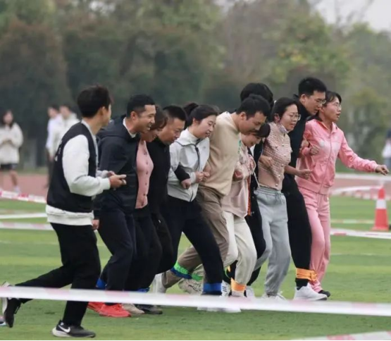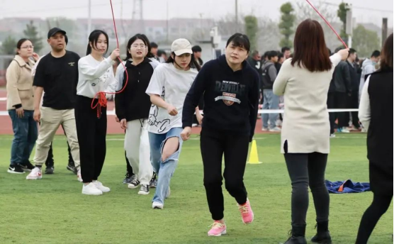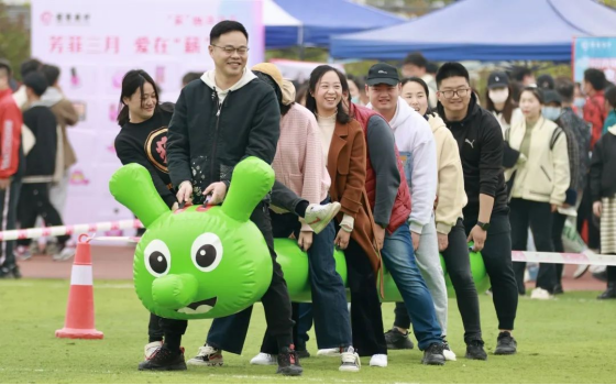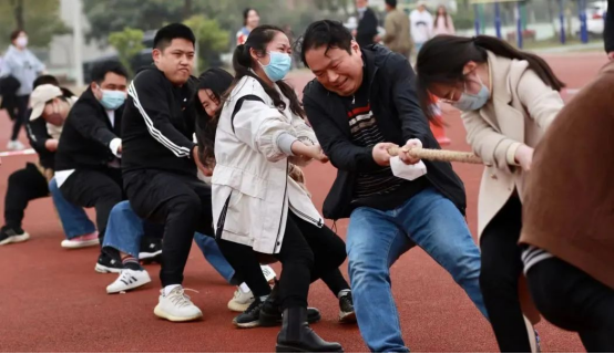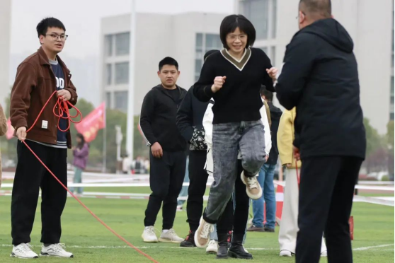 329日的活动吸引了全校600余名教职工参加。现场活动丰富多彩、精彩纷呈,拔河、集体8字跳绳、十人九足、“众星捧月”、毛毛虫竞速等项目和各类小游戏集趣味性与竞技性于一体,赛场气氛紧张活泼,喝彩声、欢笑声此起彼伏。