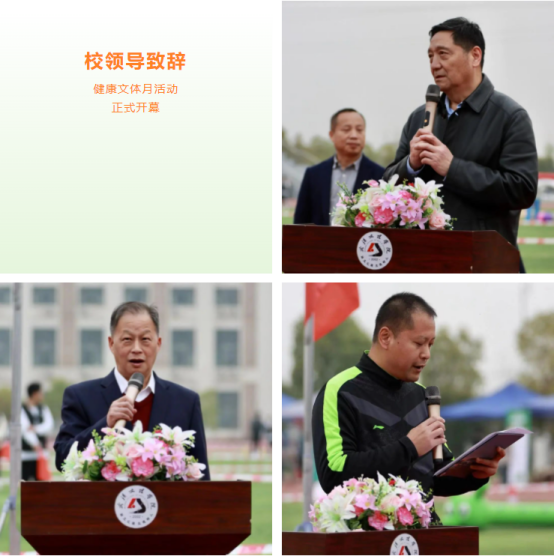 “健康文体月”活动开幕式由校党委副书记赵学迅主持,校长刘可风致开幕辞,校党委书记杨知勤激情宣布本届“健康文体月”活动正式开幕。