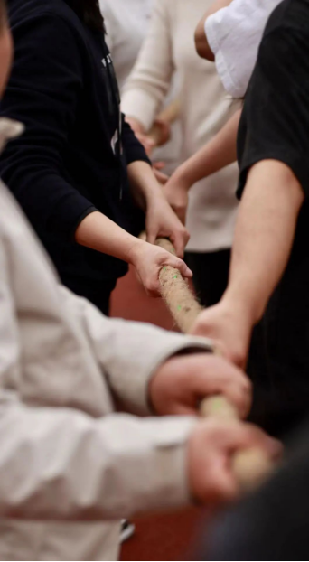 竞技类运动同样吸引众多师生前来驻足围观。随着一声哨响,“十人拔河”项目随即展开,各参赛队伍瞬间进入紧张状态,队员们个个精神振奋、斗志昂扬,长绳被老师们紧紧地拽在手上,一副“力拔山兮气盖世”的豪迈气势。