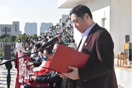 在全体师生的注目下