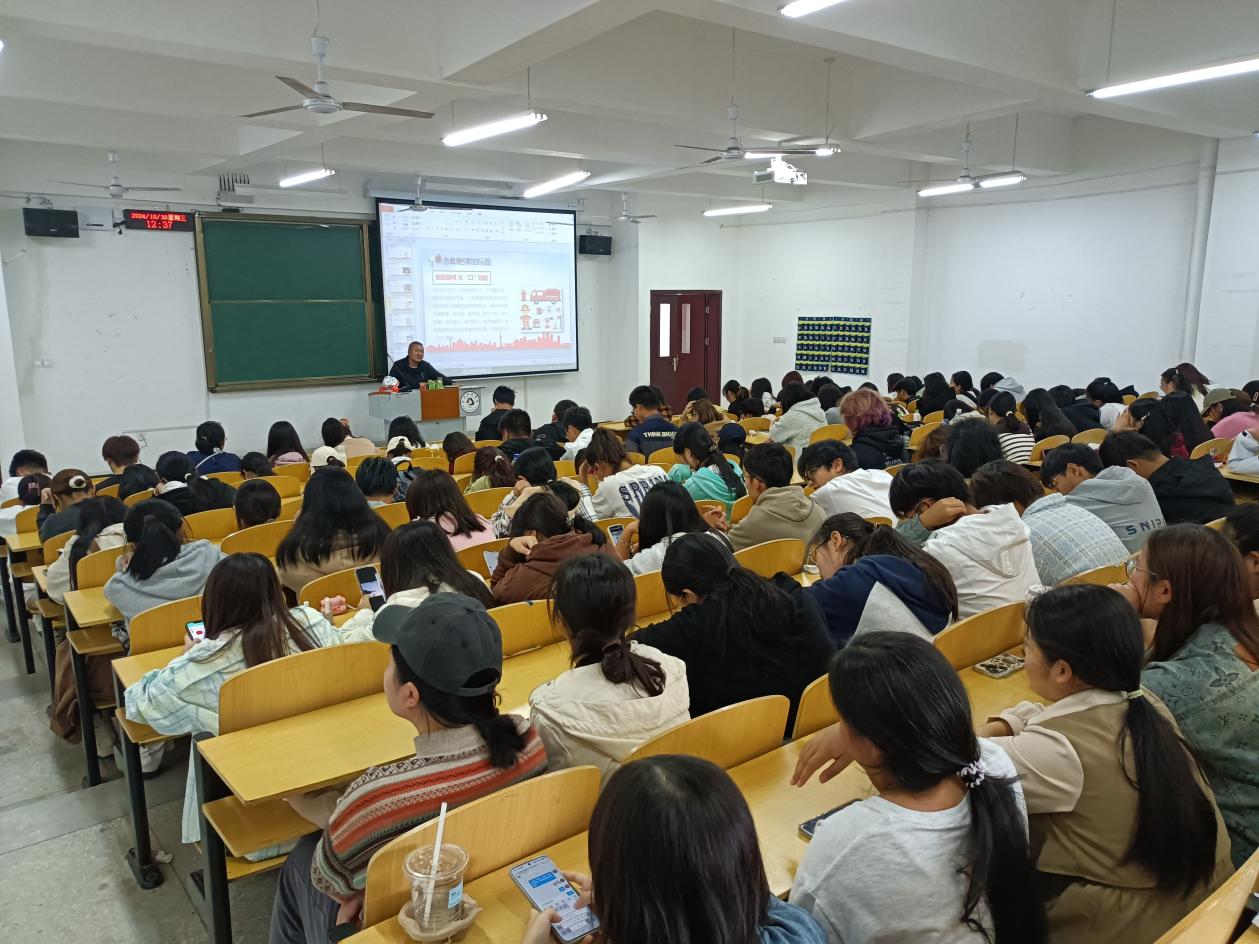 本次讲座根据年级划分为四个批次进行。总务处为政法学院学生详细讲解了火灾的基本知识和消防法律法规,重点讲解了生活中同学们该如何有效避免火灾发生、如何科学避免火情扩大、消灭火灾于萌芽之中,以及如何正确规范使用常见消防器材等,最后还用朗朗上口的四字口诀帮助同学们记忆火场逃生术,引导同学们牢固树立消防安全意识、全面掌握消防安全技能。