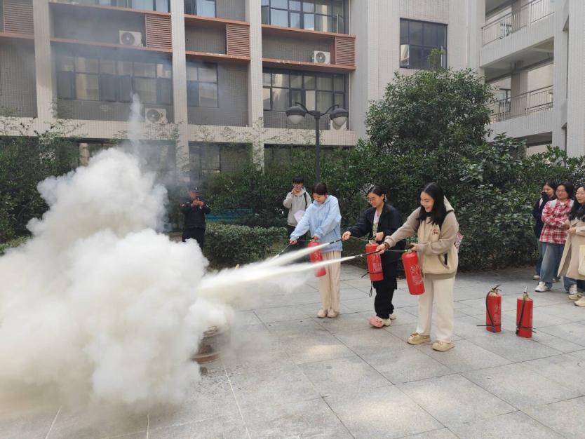 “耳闻之不如目见之,目见之不如足践之。”培训结束后,保卫处组织学生在一楼空旷位置观摩学习安全消防设施使用方法,部分学生活学活用,亲身体验了灭火器的灭火威力。“实践长真才”,通过实训实练,增强了学生们的消防安全意识和逃生技能。