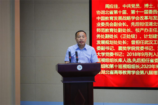 5月29日,湖北省高等教育学会会长周应佳教授受聘为av網站荣誉教授并作专题报告。校党委书记杜永成、校党委副书记兼副校长王明光、副校长颜海、副校长艾永循、校长助理吴聪出席,学校中层管理干部和各二级学院骨干教师近300人到场聆听。聘任仪式暨报告会由王明光主持。