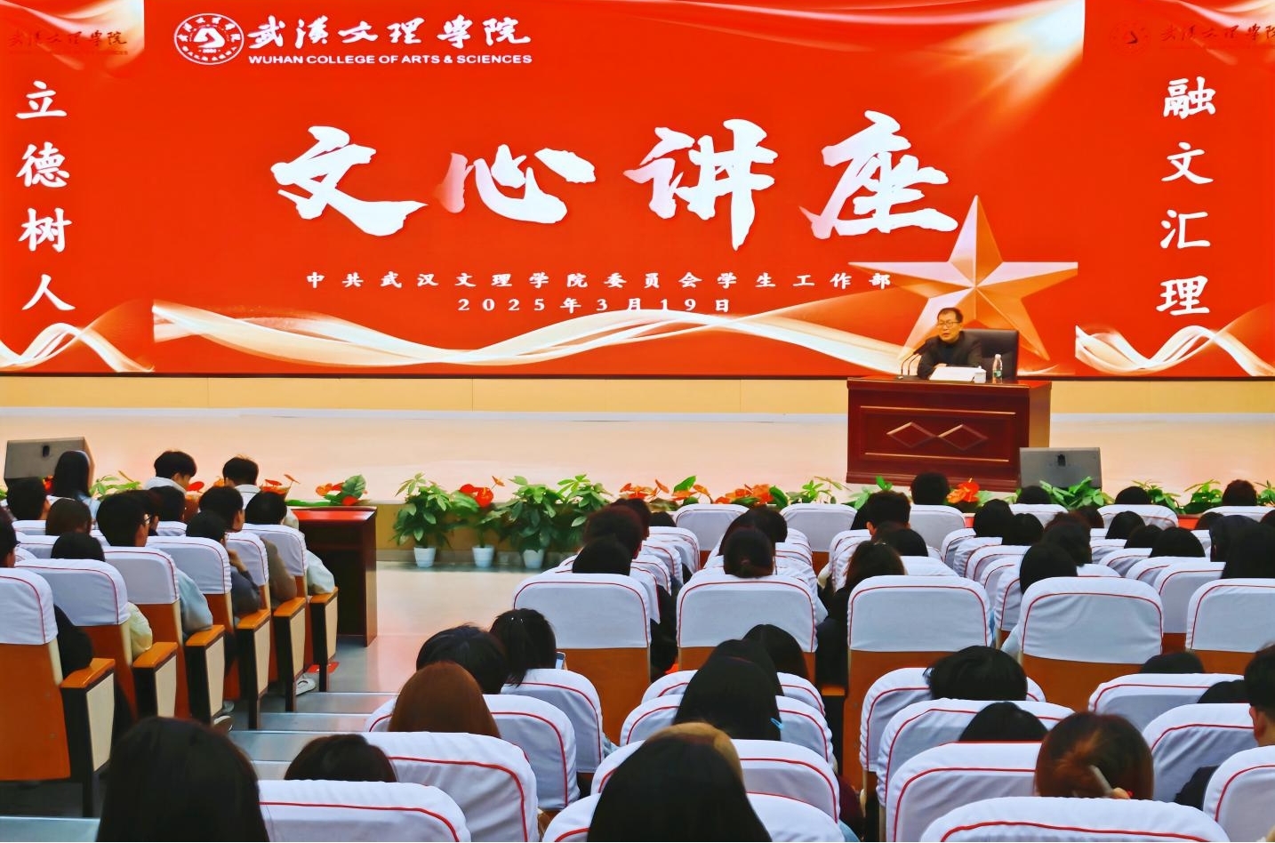 校党委高度重视文化育人的功能,希望通过多种形式的人文素质教育,营造积极向上的校园文化氛围。党委学生工作部和校团委根据党委的工作部署,决定在今年创办“文心讲座”平台,计划邀请校内外人文社科领域的专家学者来校作报告,主要讲授人文社科方面的知识,目的在于开阔学生的文化视野,提升学生的文化素养。