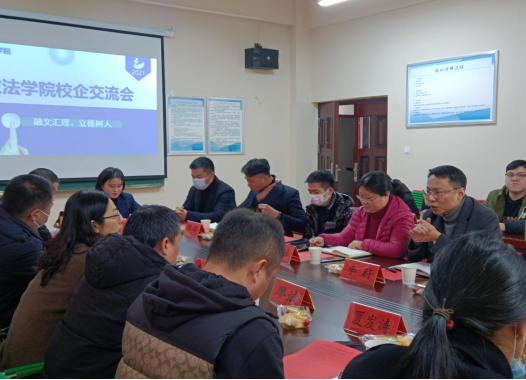 为了进一步加强学校和社会企业单位的合作,保持教学与社会实践的结合,发挥学校和企业的各自优势,实行产教融合,实现校企双方共赢,为地方经济建设培养适应社会需求的应用型人才,政法学院校企交流会于2021年12月29日在5栋415法学基础实验室举行。本次校企交流会诚邀了来自省内十余家同行企业共襄盛会,与会人员围绕“校企合作,产教双赢”这一主题,检阅校企合作的相关成果,交流教学与实践、就业一体化融合的路径,展示学院和企业的各自风采,探索校企合作建设的新方向,以促进新时代民办高校产教水平不断提升,为我院校企合作由传统形式转向新型模式嬗变升级而建言献策。