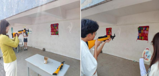 “10米射击,15发子弹!”——在怀旧感十足的步枪射击区,同学们手持安全气步枪展开精准对决。2024级计算机科学与技术2、3班同学以高分夺得当日擂主,他们兴奋表示:“屏息凝神扣动扳机的瞬间,既感受到传统射击的魅力,也体会到专注力的重要性。”活动现场设置安全隔离带,学院2名辅导员全程安全督导,累计接待120余人次,成为人气最旺的体验项目之一。
