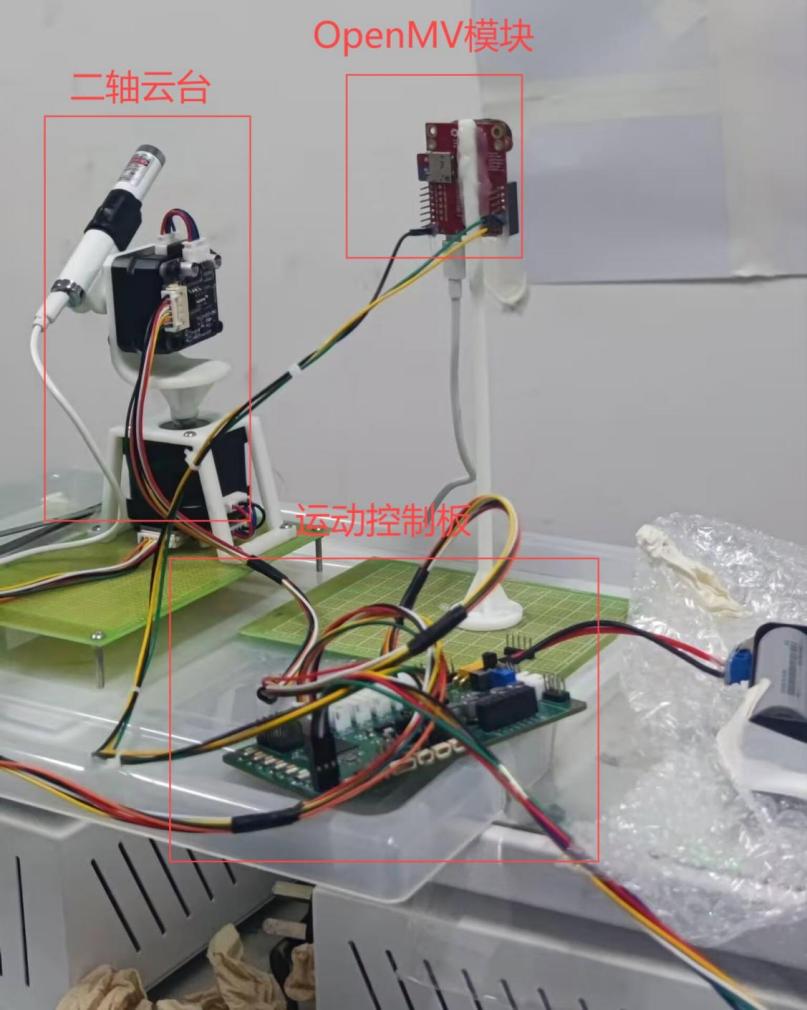 该系统采用OpenMV摄像头实时采集图像,通过颜色阈值分割、目标定位等算法快速识别特定颜色物体,并利用PID控制算法动态调整二轴云台的角度,使激光指示点始终锁定目标。相较于传统方案,“光瞳追踪者”不仅成本大幅降低,还具备响应速度快、适应性强等优势,可在不同光照条件下稳定运行。