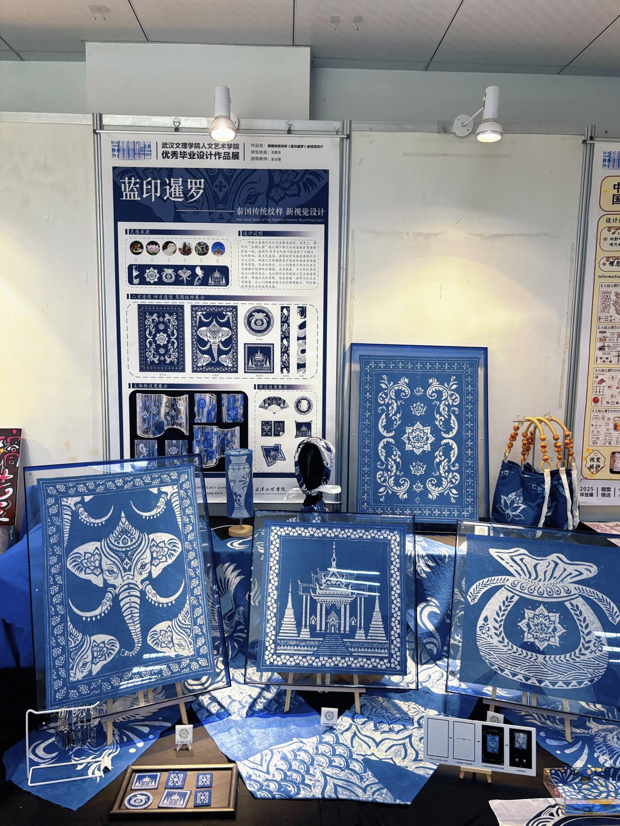 王皓天巧妙运用二方连续与四方连续的纹样结构,赋予作品强烈视觉张力,更以“中泰齐心·命运与共”的主题传递跨越地域的情感价值。面对国际评审,《蓝印暹罗》凭借深邃的东方意蕴与普适的情感共鸣,成为中西审美交融的典范。