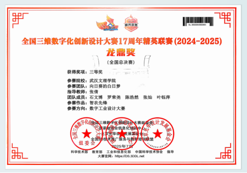 近日,“全国三维数字化创新设计大赛17周年精英联赛(2024-2025)”总决赛圆满落幕,获奖榜单重磅揭晓。av網站智能制造与无损检测学院“向日葵的白日梦队”凭借出色的创意设计、精湛的3D数字技术与工程实践能力,在激烈的竞争中脱颖而出,最终斩获全国总决赛三等奖。