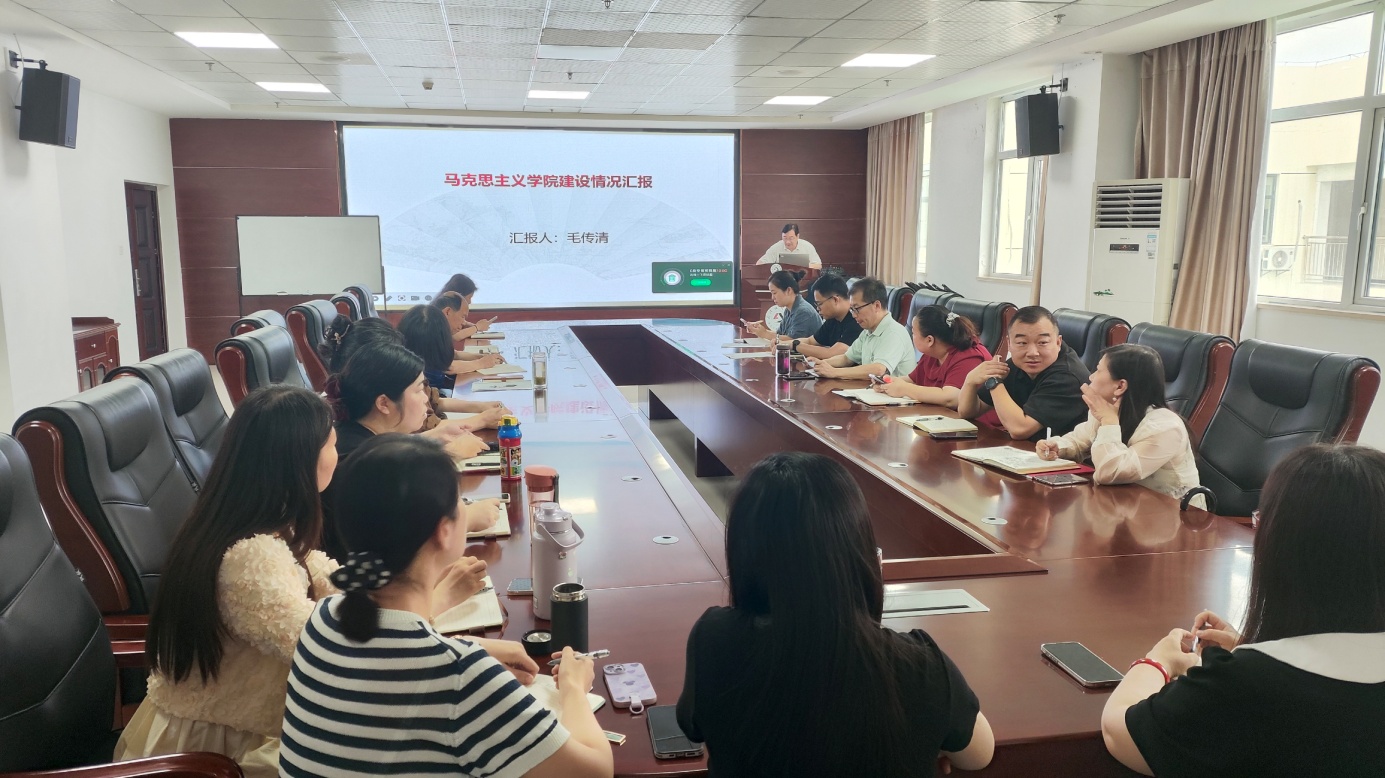 会议首先听取了毛传清的工作汇报。学校马克思主义学院自 2022 年 6 月 15 日成立以来,在师资队伍建设、教学、科研、社会服务以及党的建设等方面均取得了显著成效,较好完成了学校布置的各项目标任务,但同时也存在若干亟待解决的问题,离湖北省示范性马克思主义学院建设标准还有很大的差距。